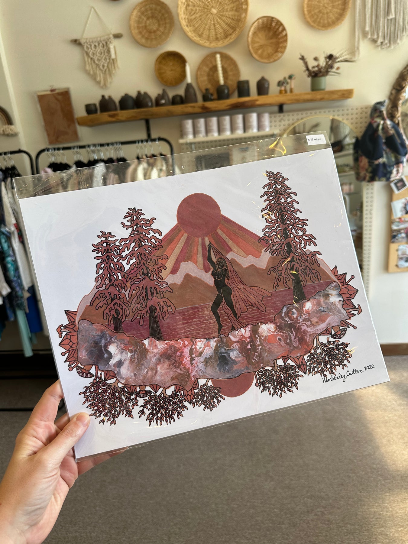 Kimboho Art Print Pink Sunset Goddess 14” x 11”