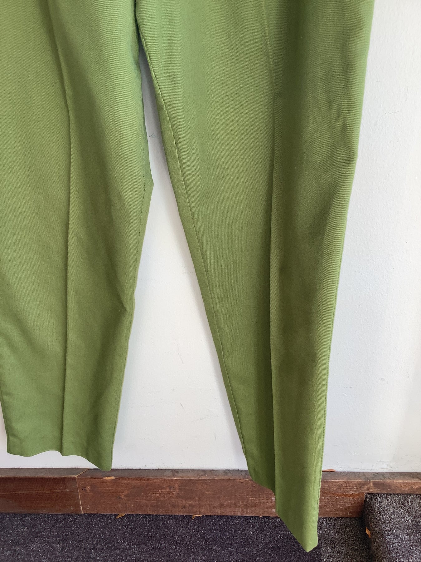 Step into retro charm with these vibrant apple green trousers. Featuring a high-rise waist, tailored pleats, and a straight-leg cut, they’re the perfect statement piece for pairing with a tucked-in blouse or a cropped sweater. The bold color gives off major mid-century vibes while still feeling fresh and modern. Size 6