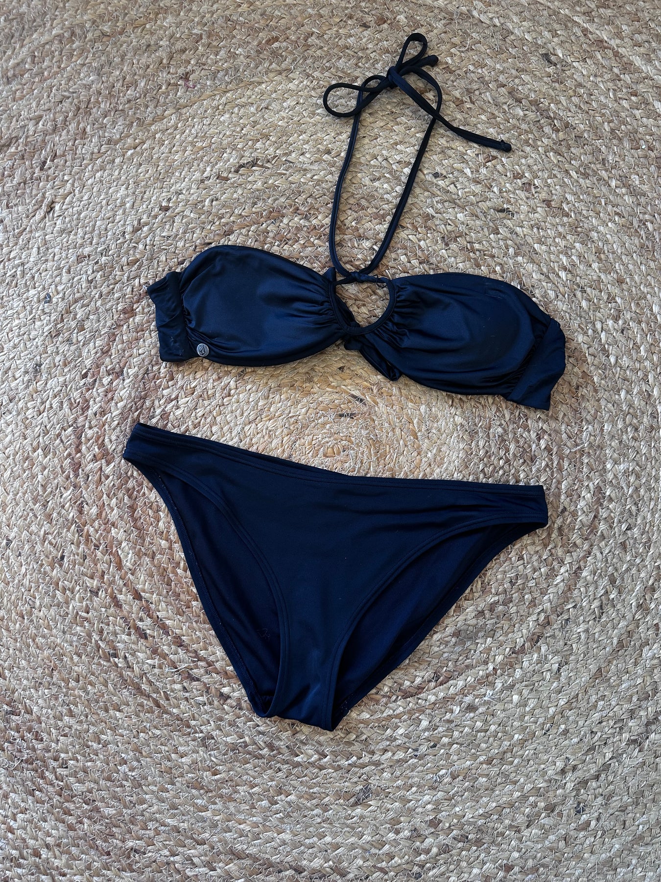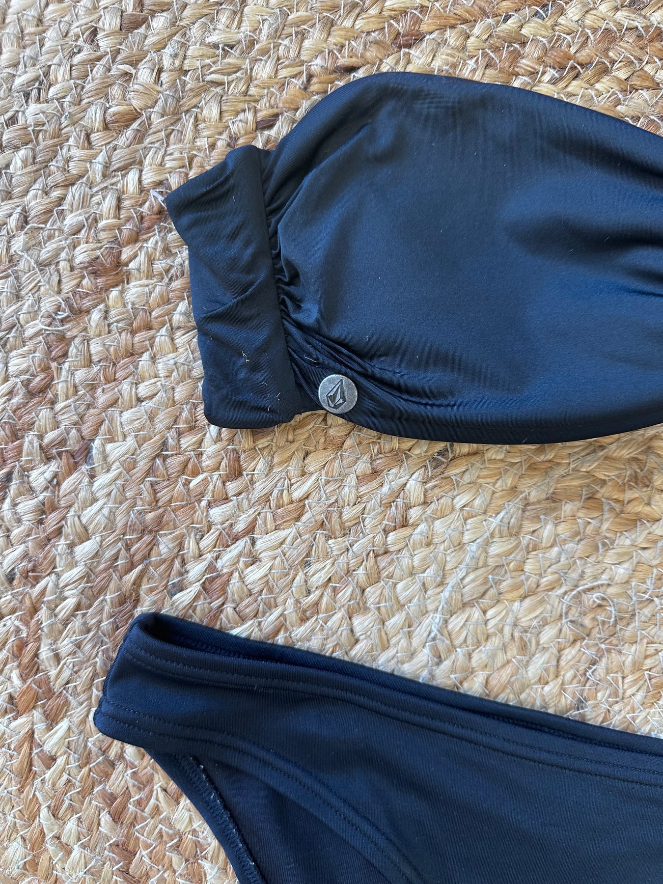 Sleek, simple, and made to turn heads. The Volcano bikini features a strap-optional bandeau top with a front keyhole detail and flattering ruching on the sides. Paired with classic mid-rise bottoms, this set is the perfect balance of secure and stylish. Whether you’re catching waves or sun rays, this suit is ready.