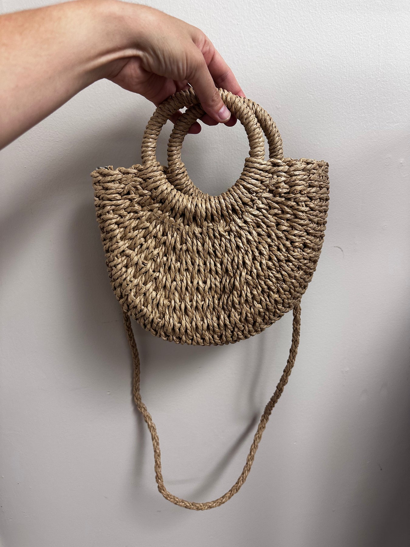 Woven Natural Fiber Circle Handle Bag