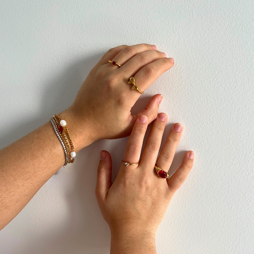 An everyday must! Add this classic bow ring to your accessory collection for a timeless touch to any outfit. Want to up your stack and feel coquette? Start with this bow ring. Wear it all day long - your future favorite ring is waterproof, non-tarnish and hypoallergenic!