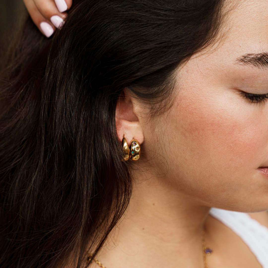These trendy Zircon hoops earrings are perfect for your everyday. Stack them with our best sellers or wear them alone, they will definitely steel the show.
