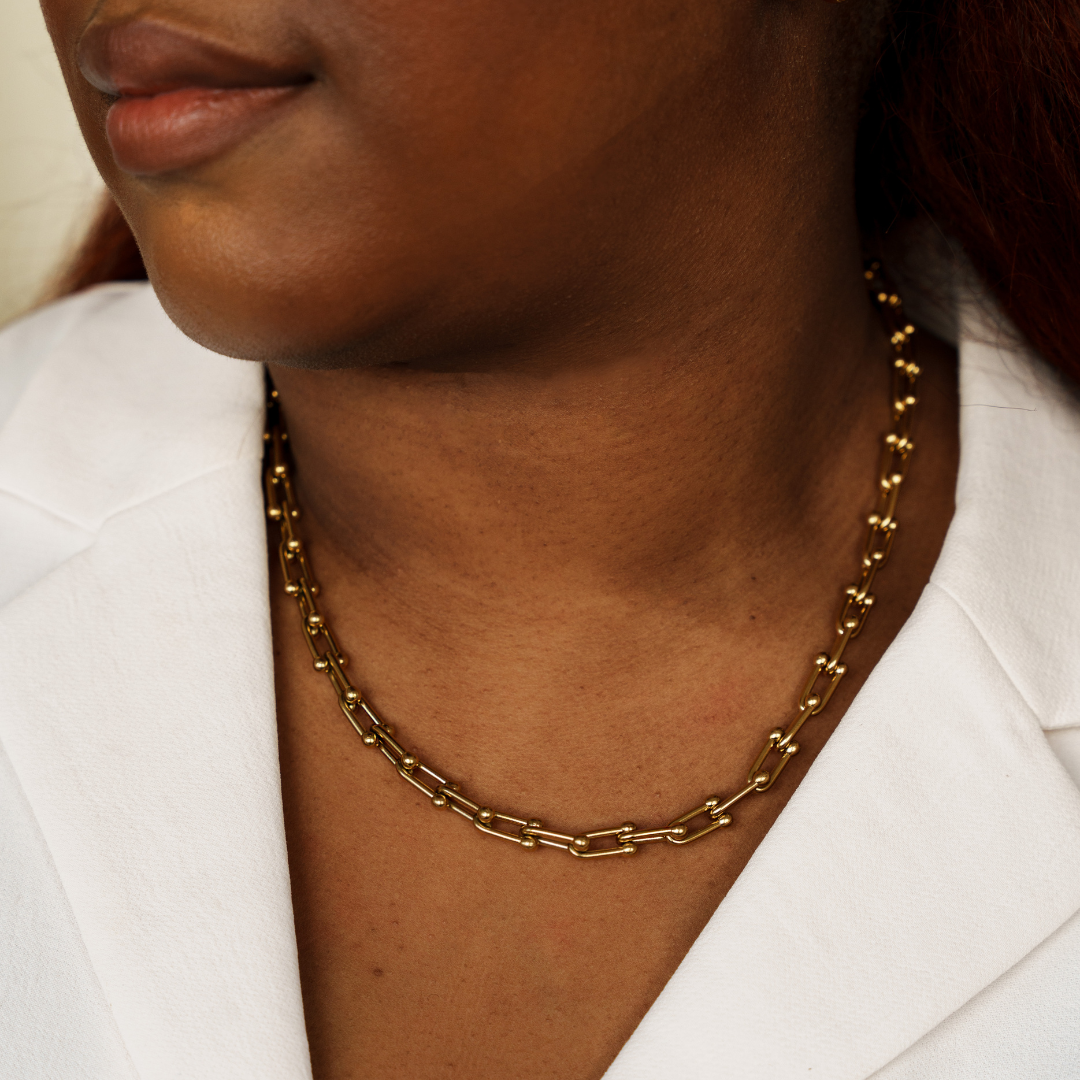 This trendy necklace is perfect for your everyday. Stack it with our best sellers or wear it alone, it will definitely steel the show. Water resistant, durable and non-tarnish necklace.