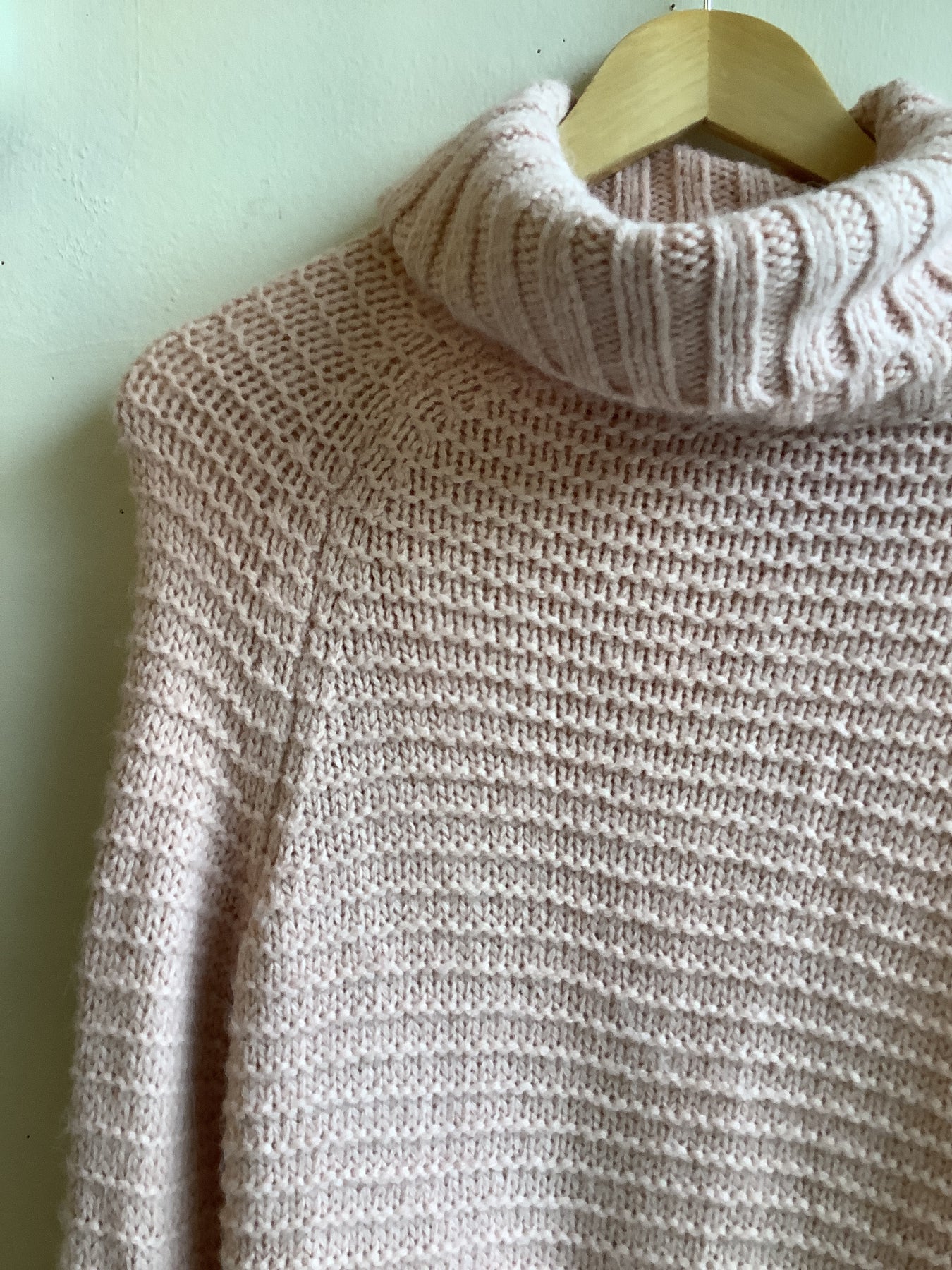 Cozy and chic, this vintage-inspired blush pink turtleneck sweater is the ultimate cold-weather essential. Featuring a chunky knit texture, relaxed fit, and a wide fold-over collar, it brings both warmth and effortless style. Perfect for layering over jeans or pairing with a skirt for a soft, feminine look.Fits like a relaxed Med