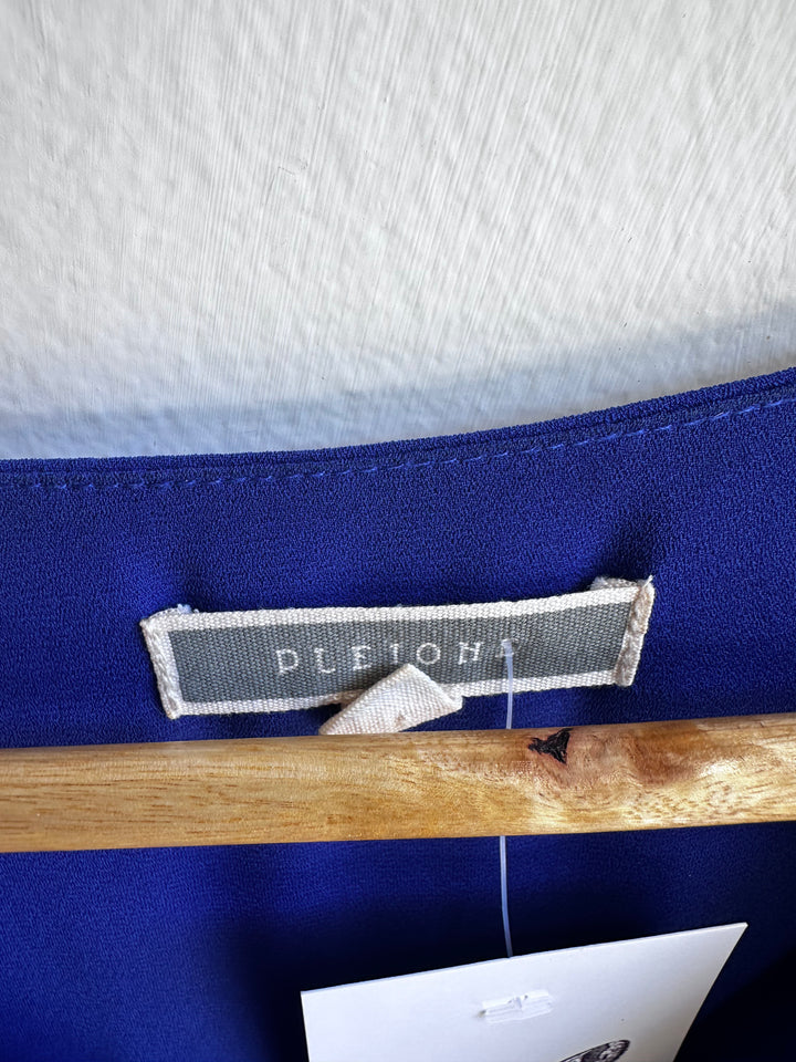 A vibrant wave of cobalt blue that instantly elevates your look. This silky blouse by Pleione features soft draping at the shoulders, a flattering notched neckline, and 3/4 sleeves with a gentle gather — balancing polish with ease.