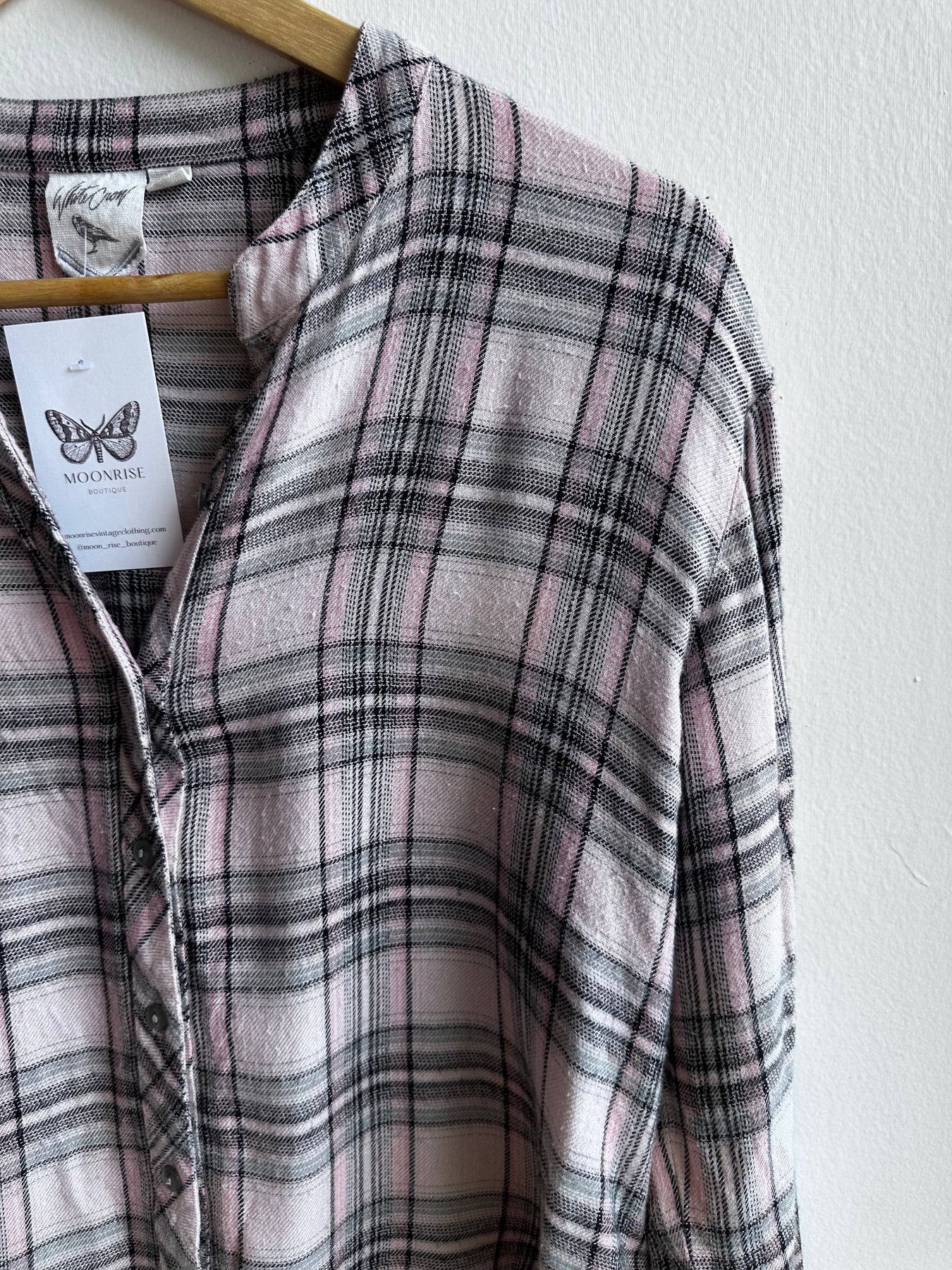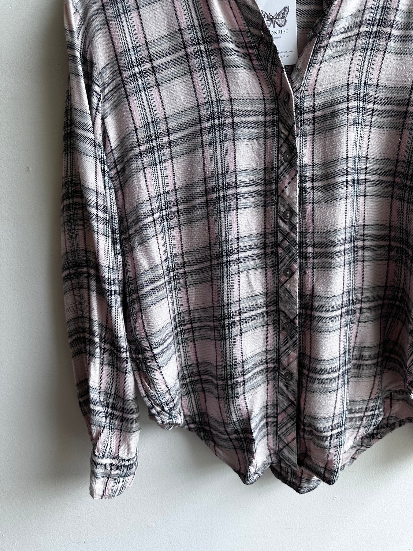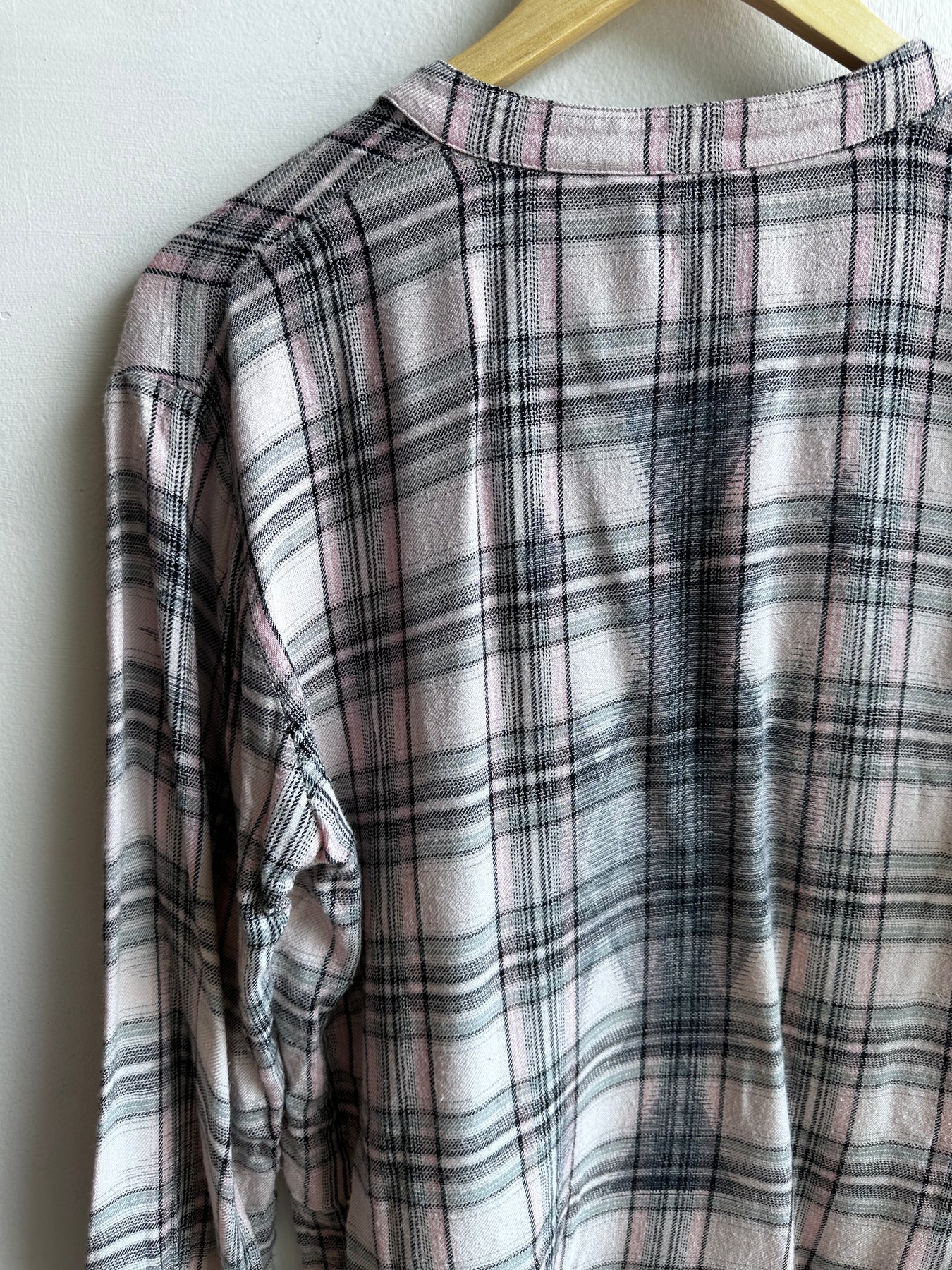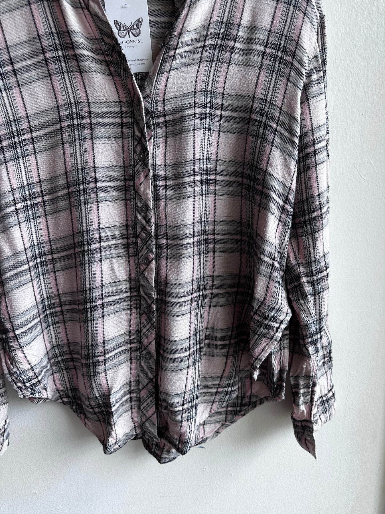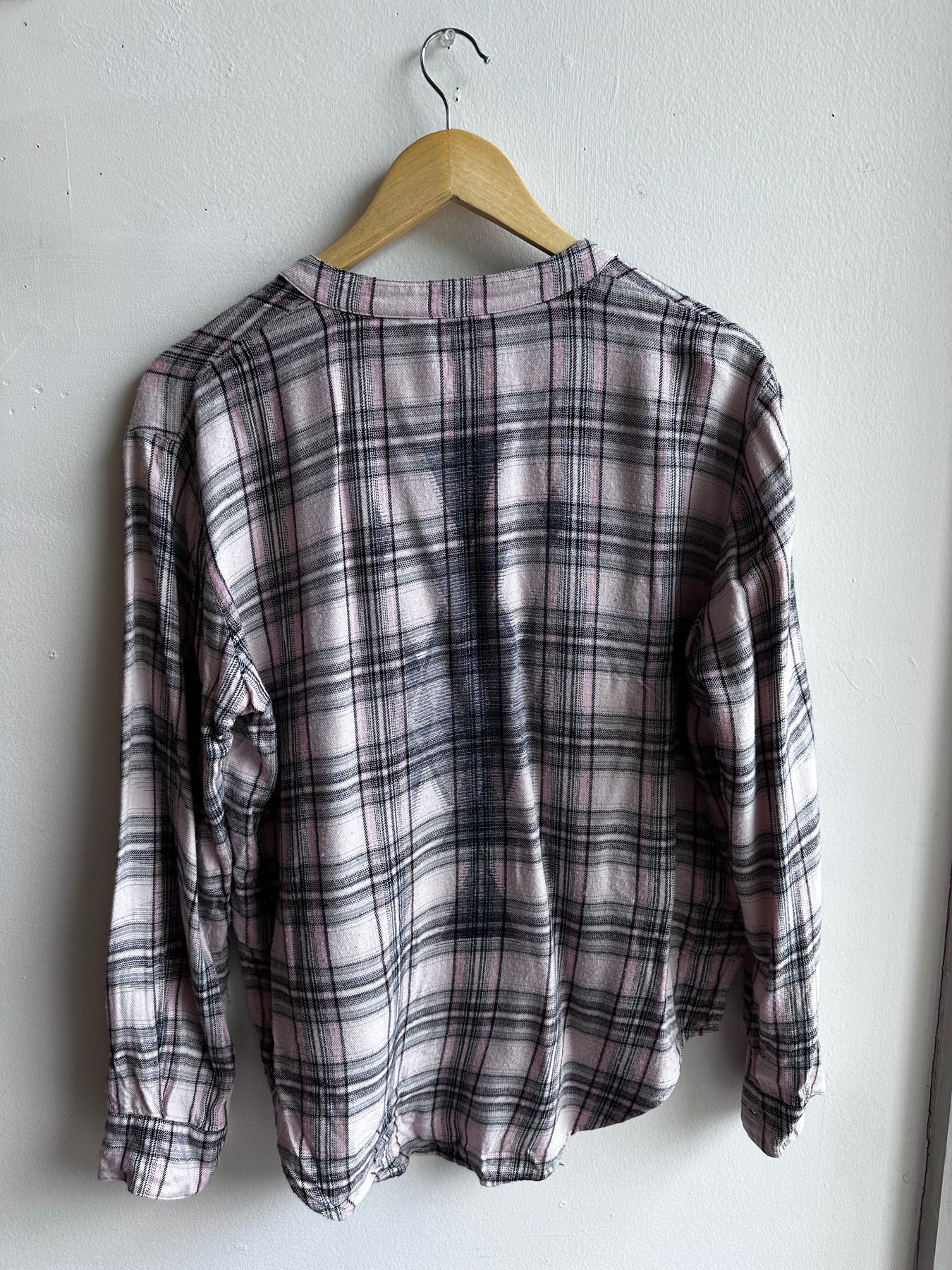 Soft Pink & Grey Plaid Button-Up – Size Small