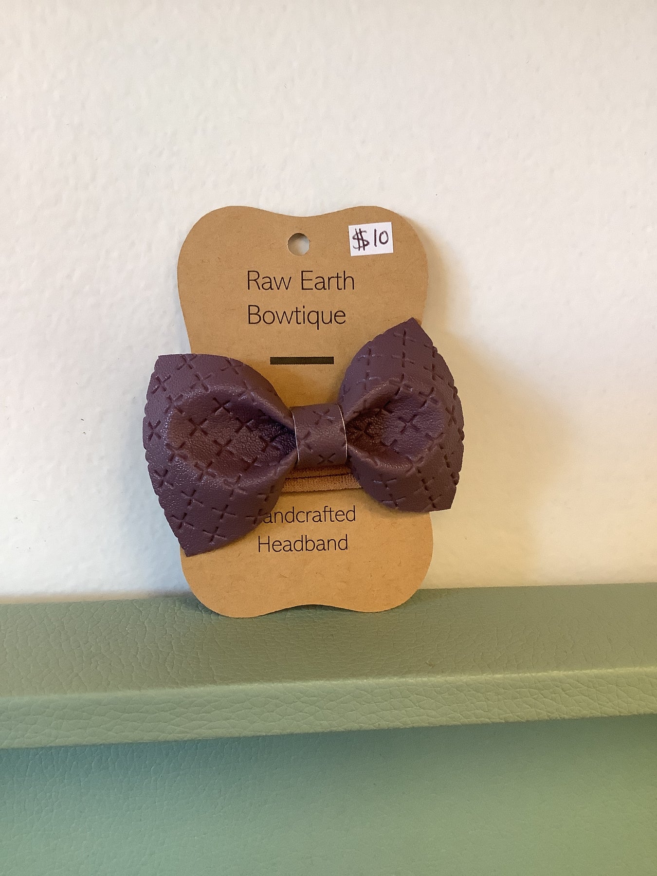 This Raw Earth Bowtique purple leather headband features a unique X pattern and is made in Kalso, BC. Handcrafted with care and precision, this headband adds a touch of elegance to any outfit. Made from high-quality leather, it offers both durability and style for everyday wear.