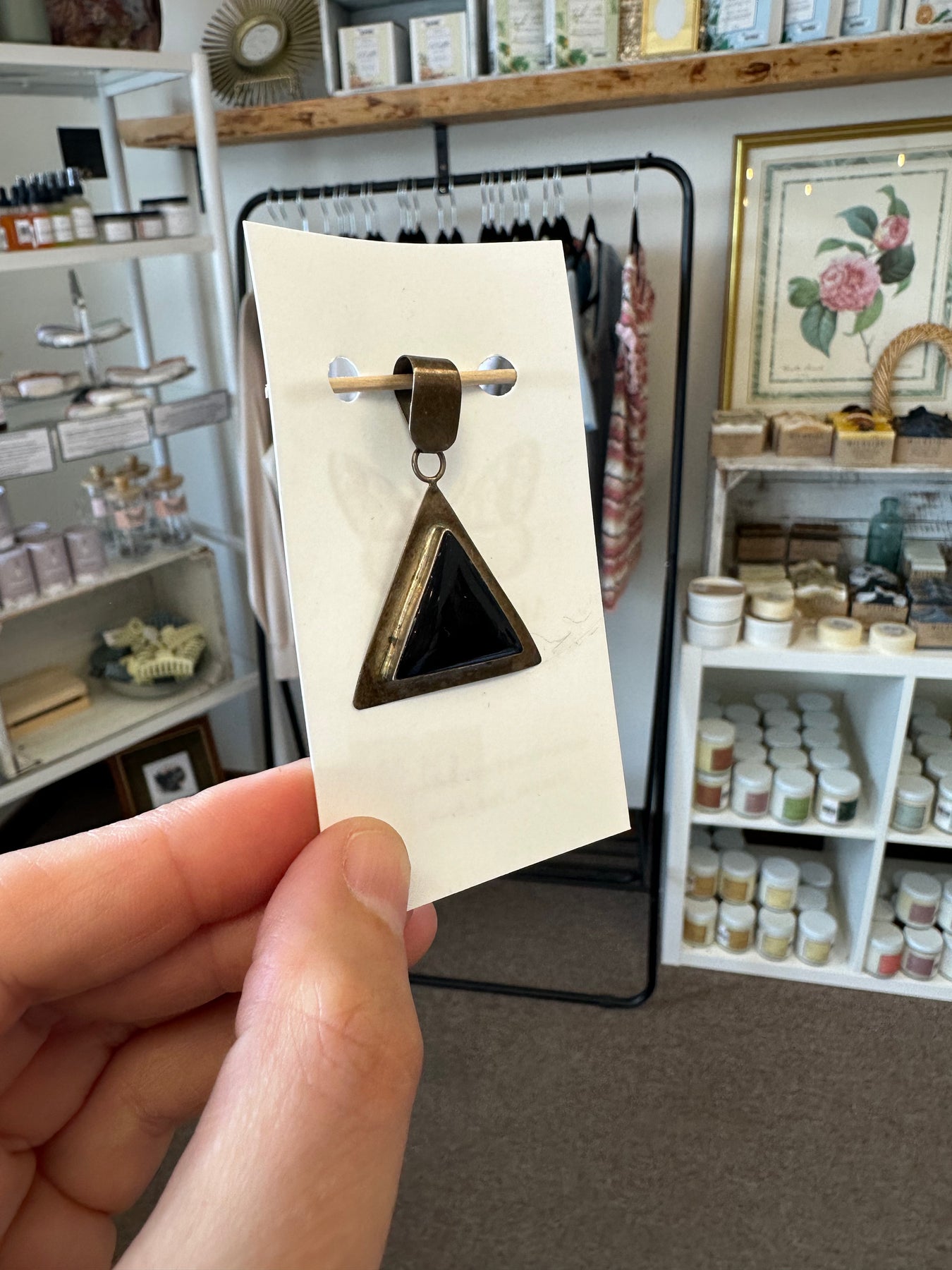 Vintage Black Onyx Silver Triangle Pyrmid Handcrafted Pendent