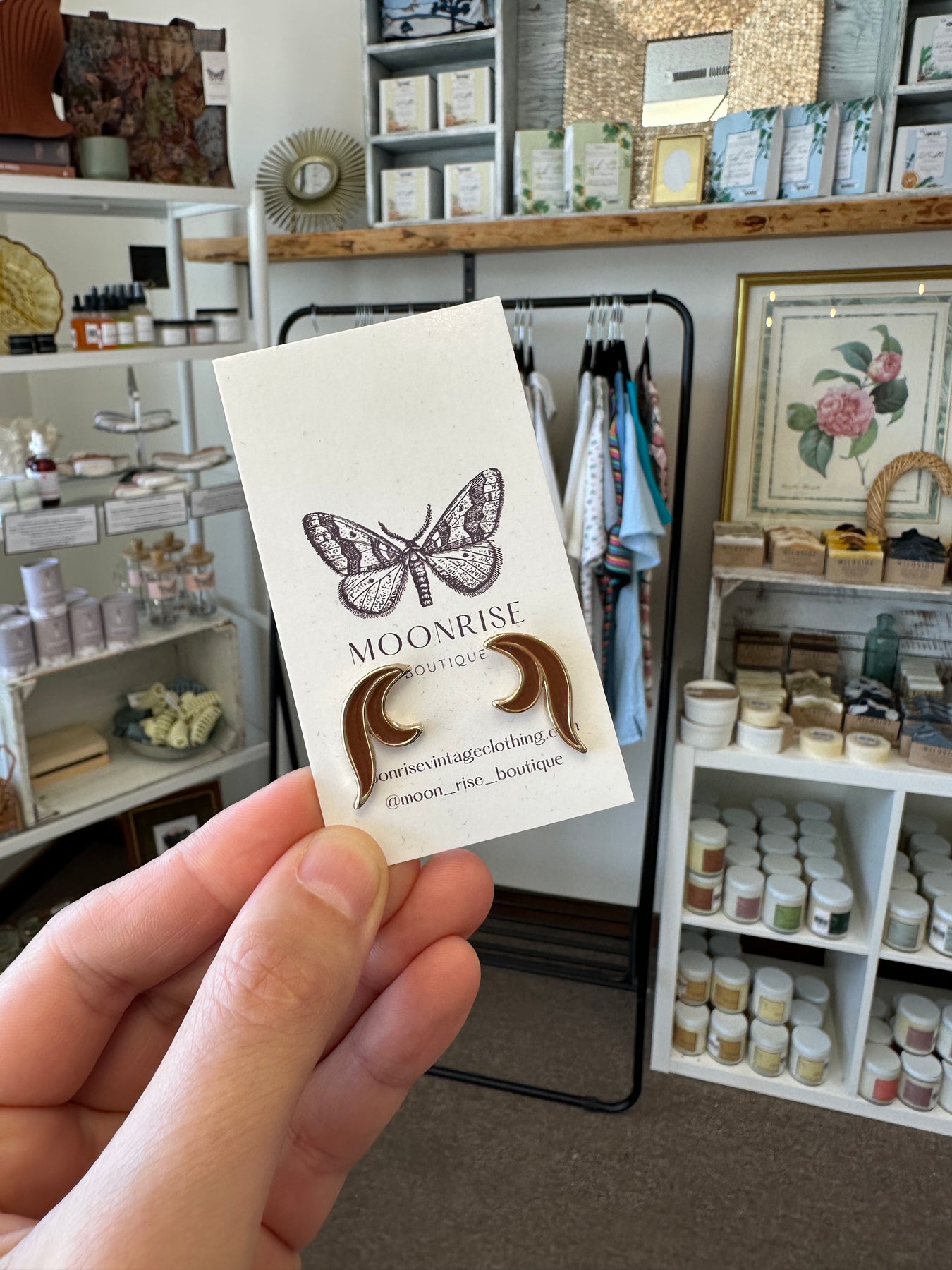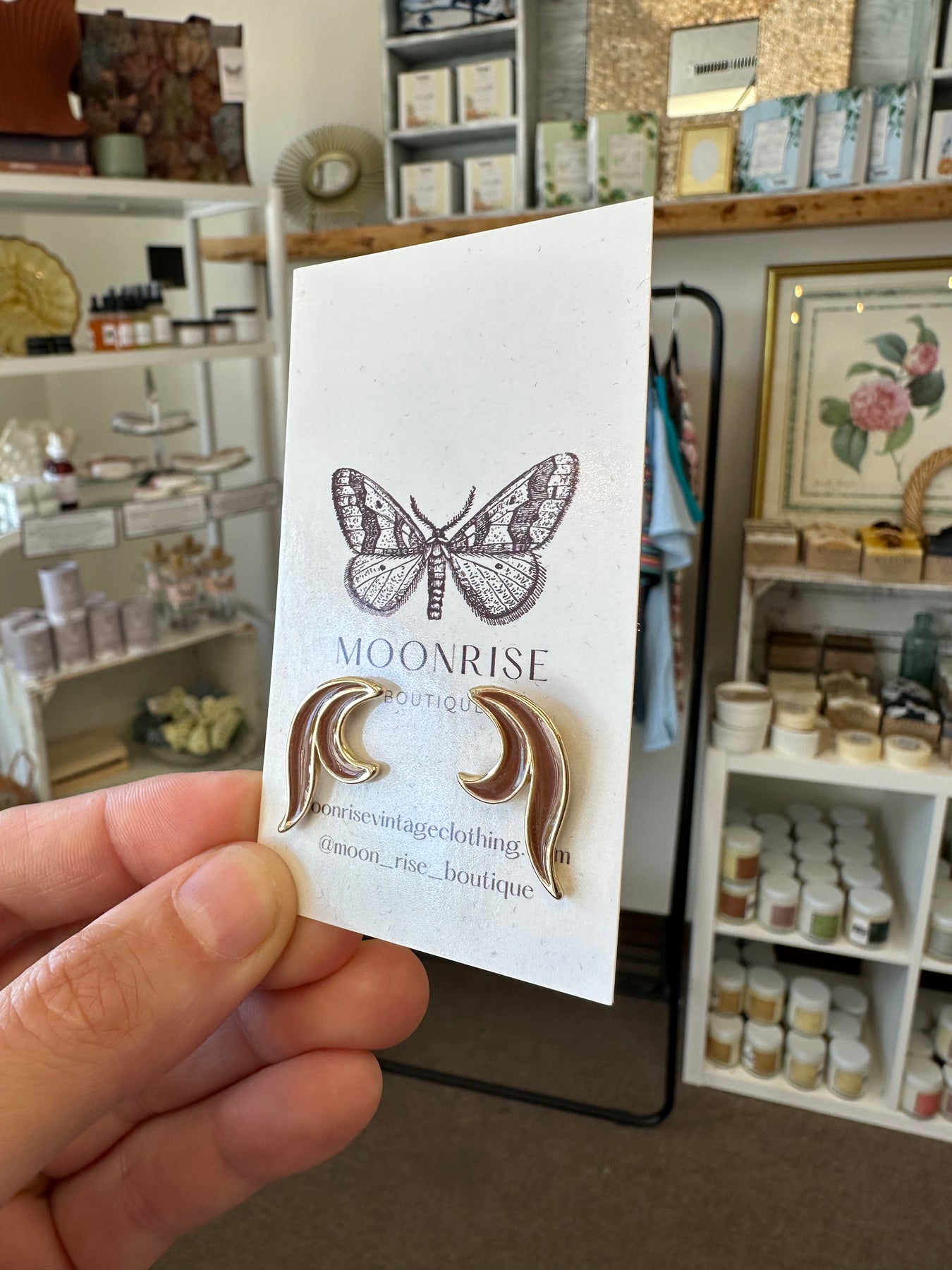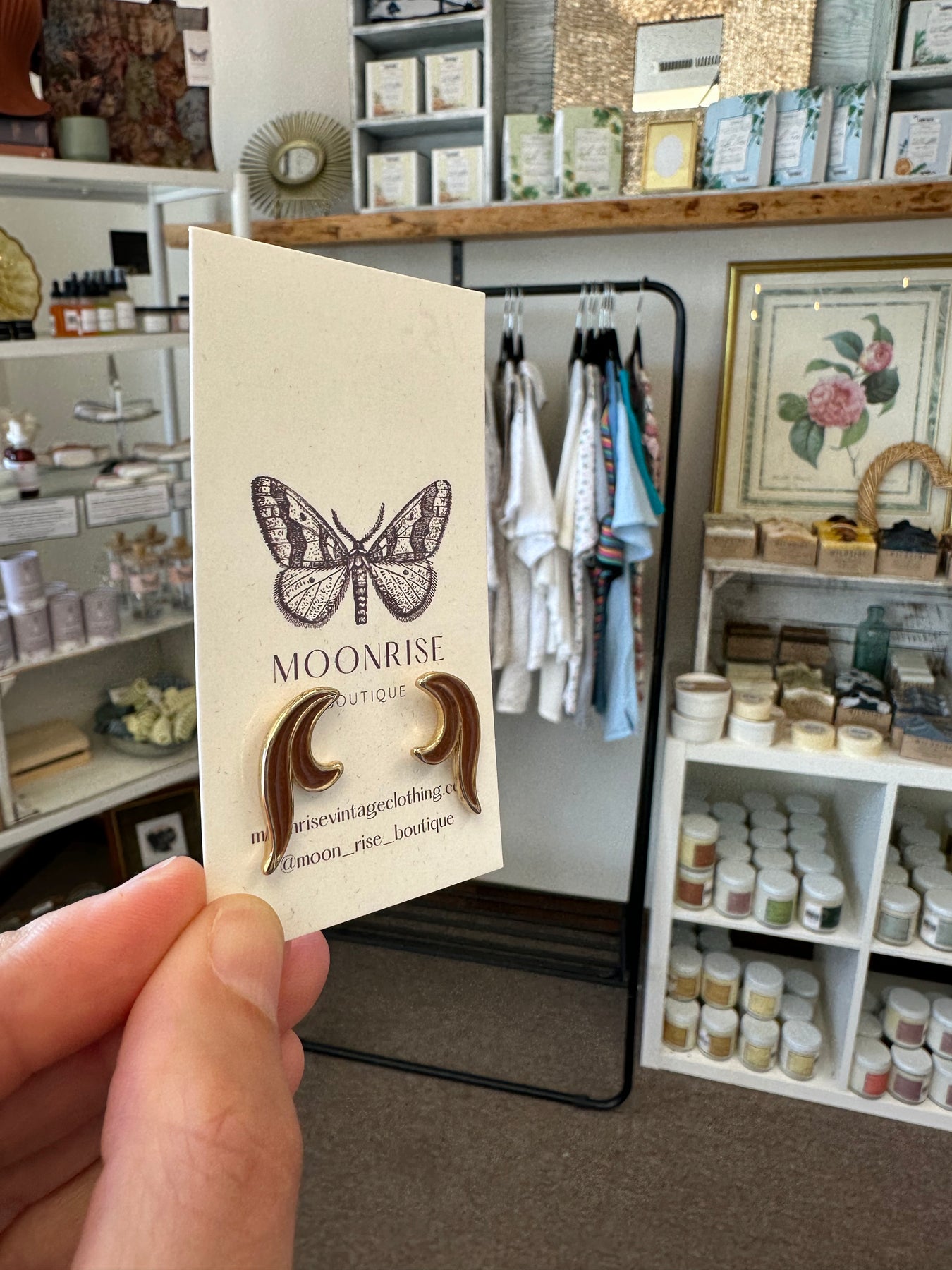 Make a bold impression with these exquisite vintage gold swirling statement earrings from Moonrise Boutique. Featuring a unique and dynamic design, these earrings effortlessly blend elegance with artistic flair. A perfect accessory for both everyday outfits and special occasions, they are a must-have for anyone looking to showcase their individuality with a touch of vintage charm!