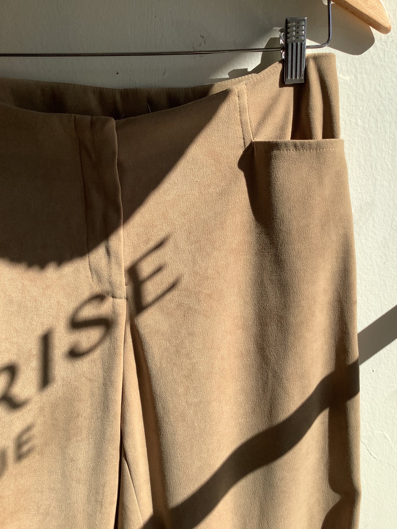Step back into sleek ‘90s/early 2000s style with these vintage Le Château pants. Crafted in Canada, they feature a luxe suede-look fabric in a warm camel beige, with a flattering straight-leg cut and high waist. Side zip closure keeps the silhouette smooth and chic, while the soft fabric makes them as comfortable as they are stylish. Perfect for pairing with blouses, knits, or cropped jackets for a true retro vibe.