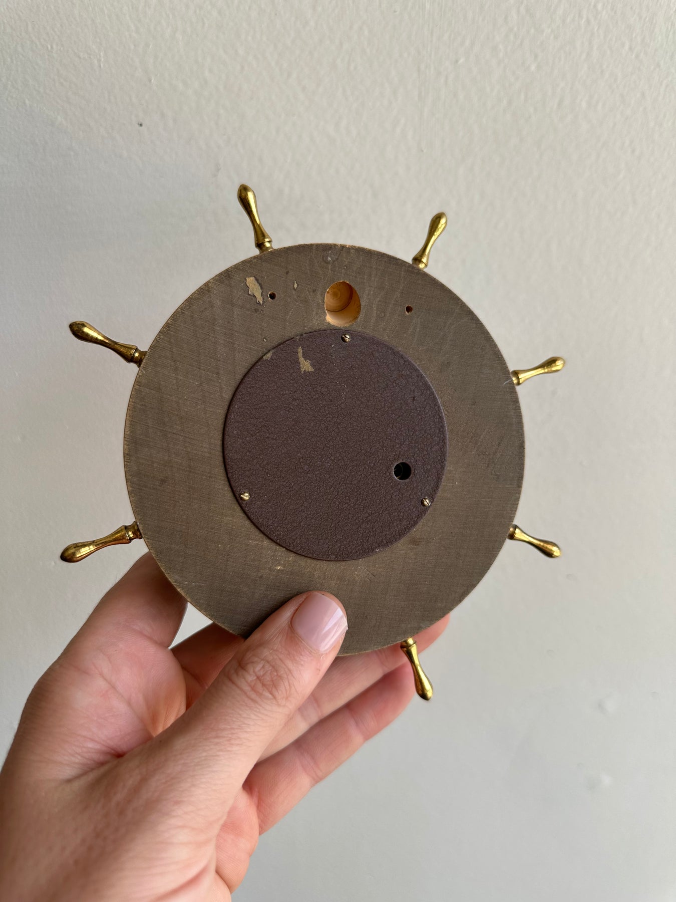 Set sail with this charming vintage barometer, crafted in the shape of a ship’s wheel with rich wood tones and brass detailing. Marked “Rensie” and made in West Germany, this functional weather piece brings a sense of maritime adventure and old-world craftsmanship to any space.