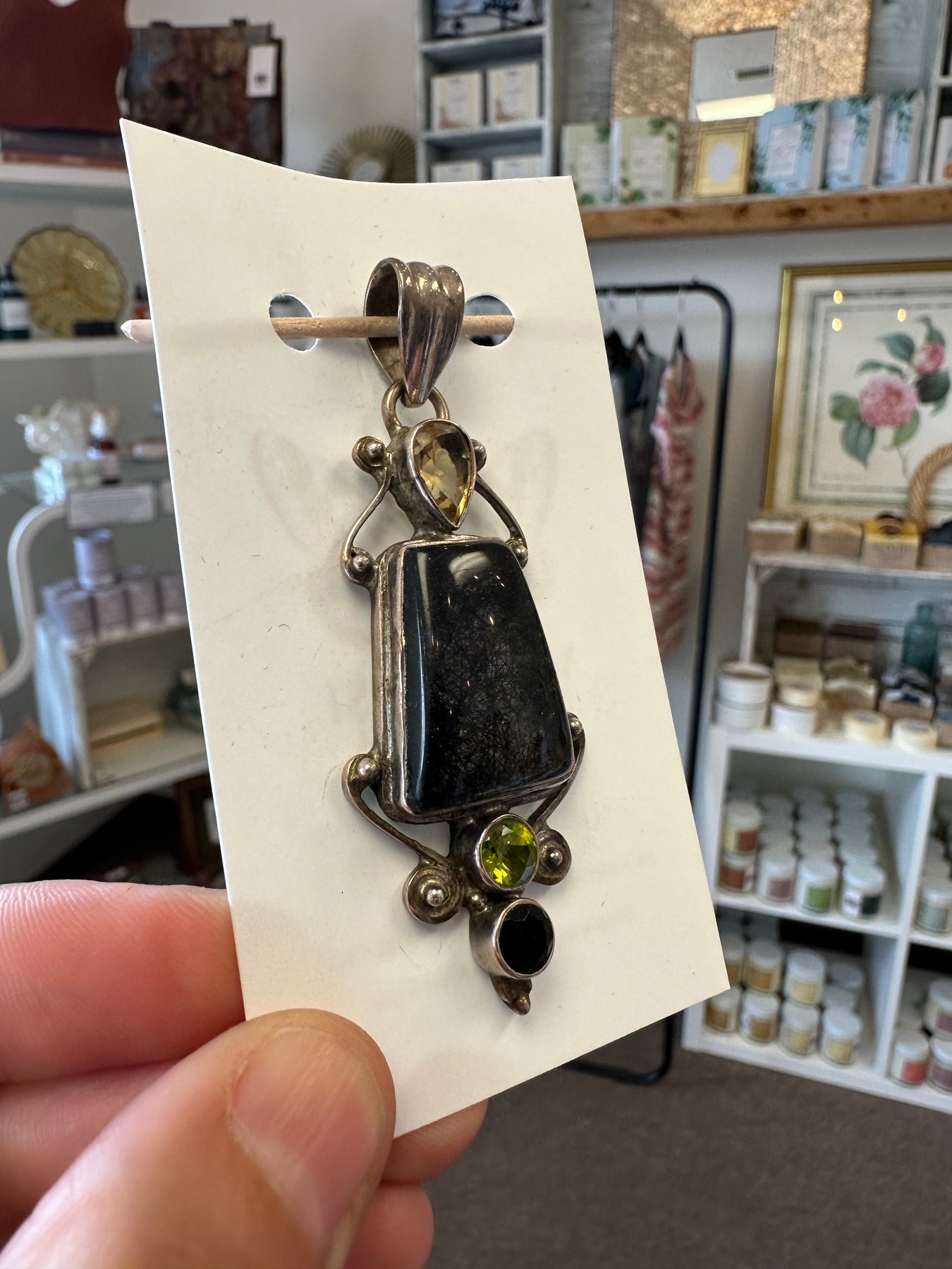 Vintage Ritilated Quartz, Onyx, Citrine + Chrydoberyl Silver Handcrafted Pendant
