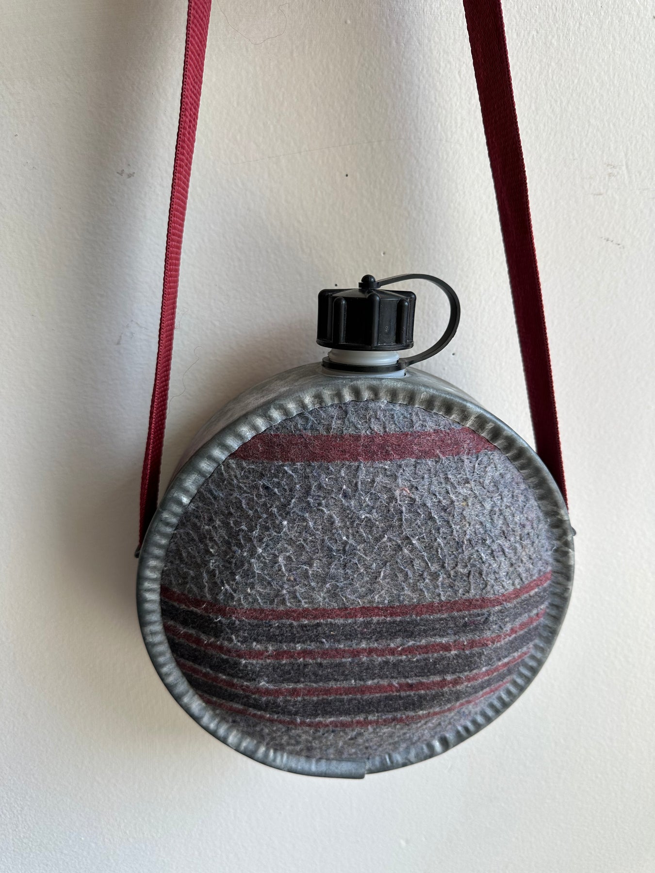 Vintage Wool-Wrapped Camping Canteen with Adjustable Strap