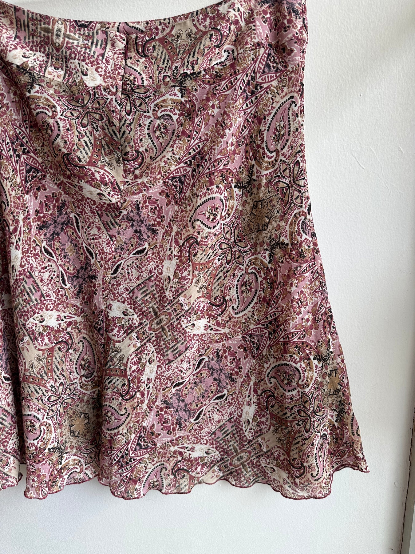 Vintage Y2K Light Sheer Pink Paisley Patterned Skirt