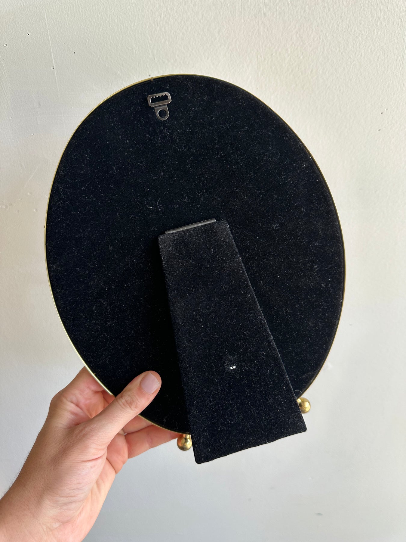 Vintage Cross-Stitch Horse & Rider in Brass Oval Frame