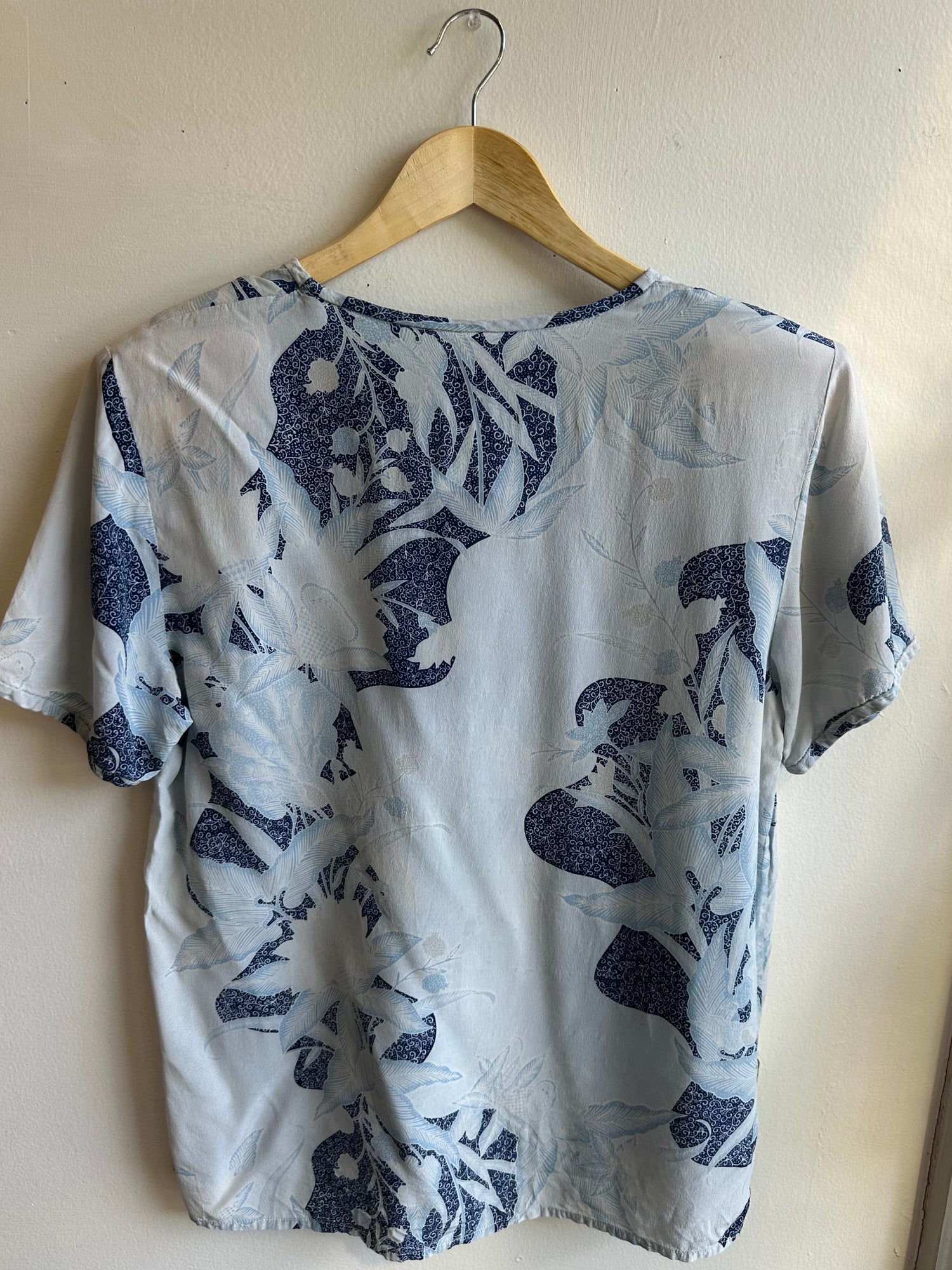 Vintage Soft Sky 100% Silk Tee | Indigo + Cream | Size Medium